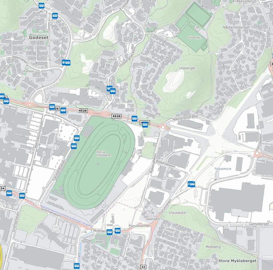 Forus Travbane ligger i Stavanger kommune, sentralt plassert mellom Stavanger og Sandnes. Fra Sola Flyplass går det kun 15 minutt med bil eller taxi, og det er gåavstand til både buss og tog (Gausel Stasjon). Scandic Stavanger Forus ligger rett ved banen.